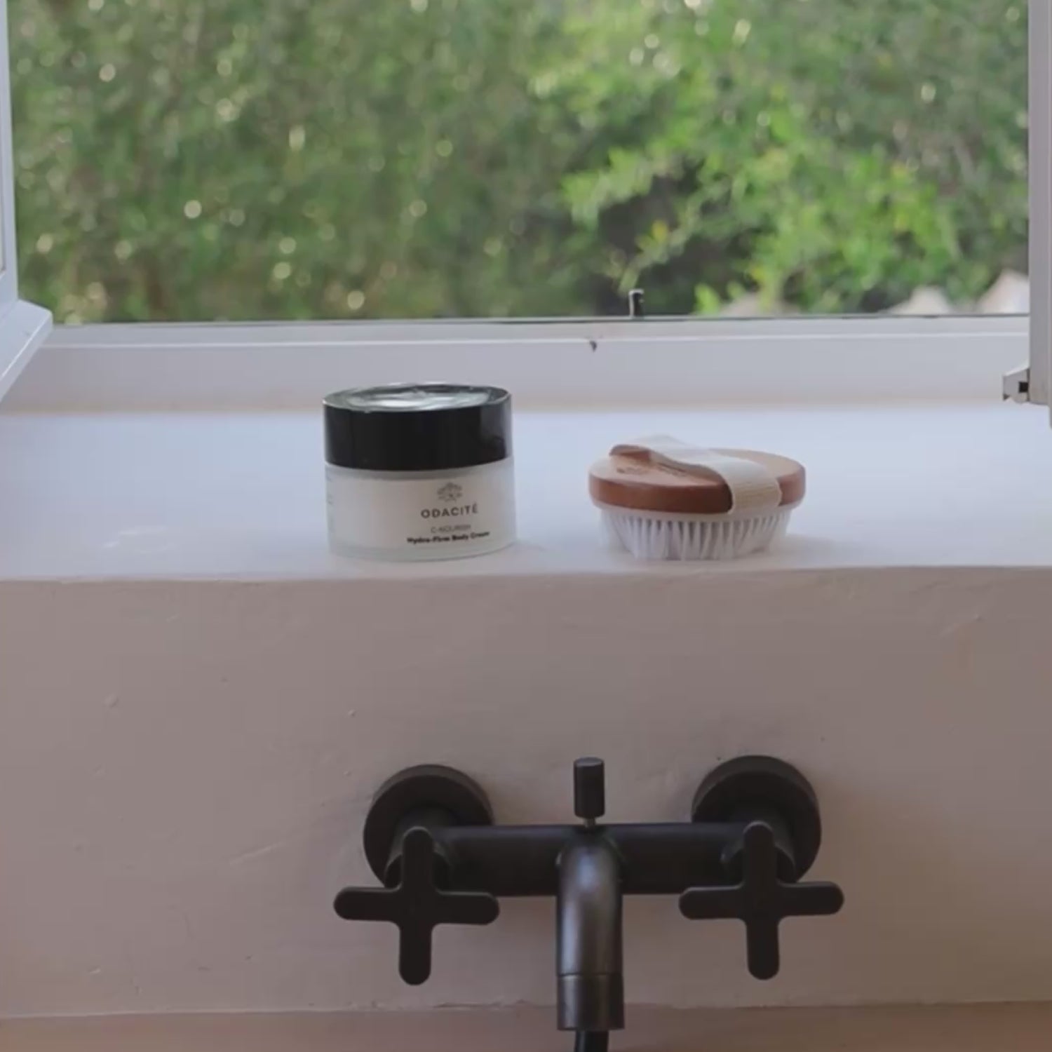 A two-step body ritual designed to transform skin from dull to luminous. Begin with dry brushing to stimulate circulation and support detoxification. Follow with C-Nourish Hydra-Firm Body Cream, a Vitamin C–powered moisturizer that deeply hydrates, firms, and restores a healthy glow. Together, they deliver visibly smoother, more radiant, touchably soft skin.