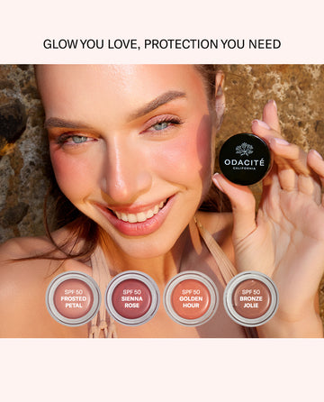 SPF 50 Color Balm: A multi-use SPF 50 color balm for cheeks, lips, and lids, that blends rich pigment with mineral sun protection & nourishing Vitamin E for effortless beauty.